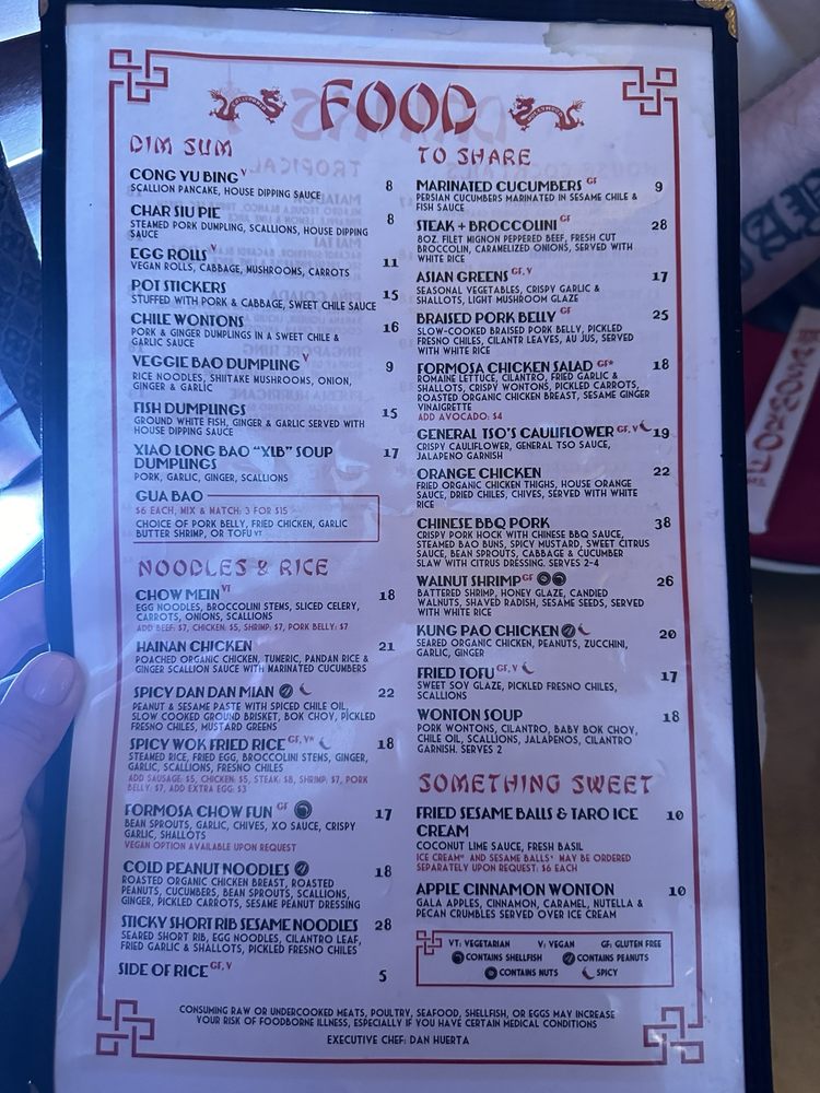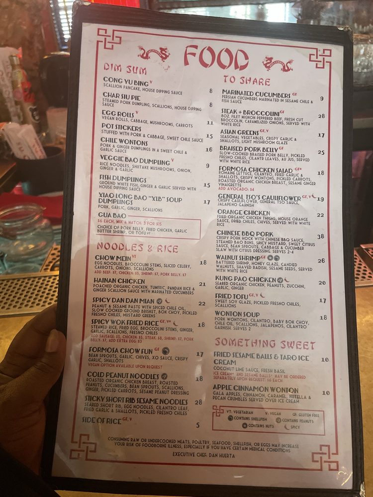 Introducing the menu at Formosa Cafe, a historical gem in West Hollywood, offers a blend of Chinese cuisine with a touch of cocktails in a casual yet classy atmosphere. With a plethora of vegan and vegetarian options, it caters to all dietary preferences. Famous for its orange chicken and crispy potstickers, the menu also boasts flavorful dishes like beef broccoli, chicken chow mein, and dumplings. The intimate setting, complete with dim, warm lighting, makes it an ideal spot for date nights or casual dinners. The staff, known for their friendliness and efficiency, add to the overall experience. A must-visit spot for those looking for a taste of classic Hollywood charm and delicious Chinese cuisine.